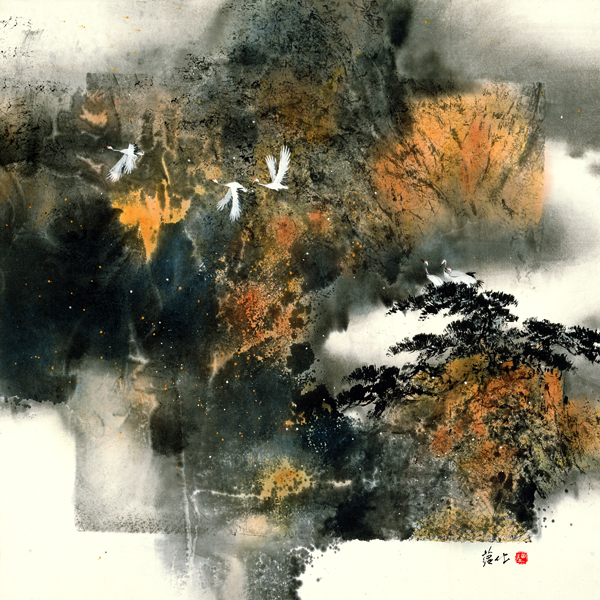 水墨設色紙本 - 韓國麻紙 Chinese ink & Colour on Korean paper 28” x 28”