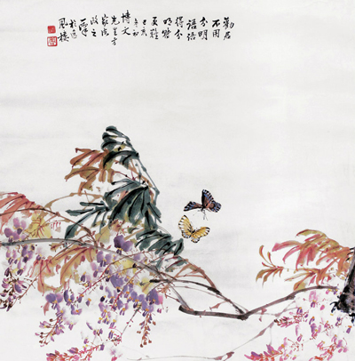就传世画迹而论,前一种风格占据其画作之主要部分,且集中在中、晚年时期;后者大多集中在早 年,作品较少。现在见其作品最多的,仍是前者。不过严格来讲,在这两种风格中,互有交融,所以有论者称其画“融贯新旧,用笔苍劲,赋色雅淡,一如其人之疏懒甘淡泊也”[3]。