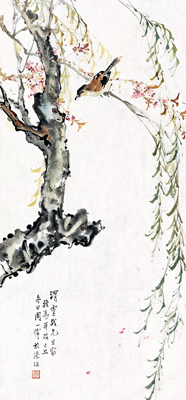 周一峰长于山水、花鸟,尤以山水为着。其画设色明艶,用笔挥洒,已出高氏、居派风貌之外。他曾于香港参加历次六人画展(另五人分别为叶少秉、何漆园、黄少强、赵少昂),据说英吏金文泰曾以重金购其作品多幅,另有某洋妇喜其墨竹麻雀,登门以重金乞画。这两个非典型事例虽不能完全说明周一峰的画所受到的殊誉,但就洋人的审美情趣而言,说明其画在视觉效果方面所传递的信息已达到一定水平。所以专门研究近代岭南画人的郑春霆称其画“用笔遒练,设色雅妍,无时下恶习”[ 2 ], 因而在多次的全国美展和巴拿马、莫斯科、比利时、柏林等举行的各国展览中,也都能见其画迹。