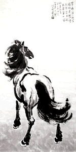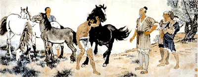 画有《溪我后》,《田横五百士》,国画有《九方皋》,《愚公移山》,《会师东京》等。最能反映徐悲鸿个性,表达他思想感情的莫过于他写马的画卷。他对马的